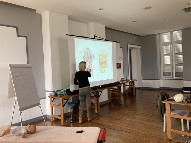Un an plus tard, la formation est née et va se nommer « Bébé au cœur de vos mains, bébé au cœur de la famille » Josette Erézué (responsable du service de néonatologie de Bordeaux), Karine Herry (psychologue en prévention et protection de la petite enfance) ) et le Dr Francine Morel (pédiatre) sont d’accord pour participer à cette magnifique aventure. Les chaînes physiologiques bébé sont enseignées aux kinésithérapeutes, ostéopathes et médecins. Aventure qui dure depuis plus de 15 ans et qui n’a de cesse d’évoluer en parallèle avec les découvertes scientifiques et les nombreuses formations que je fais :